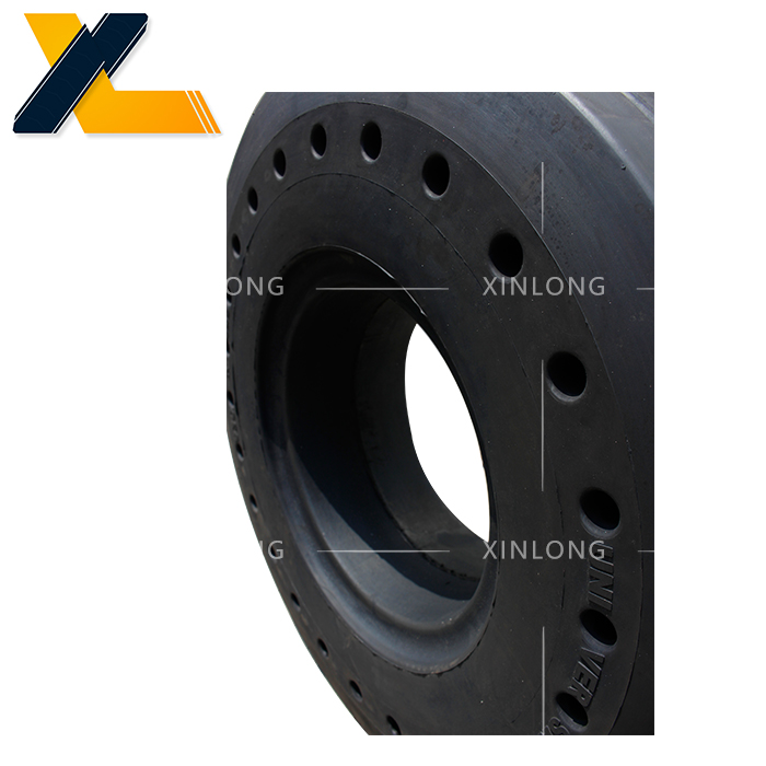 采用国家标准轮辋,可以与充气轮胎互换。与充气胎相比,耐磨、使用寿命长、滚动阻力小、能耗低、耐刺破、安全,有更高的性能价格比,在低速、高负荷运行车辆领域中,是充气胎的换代产品。